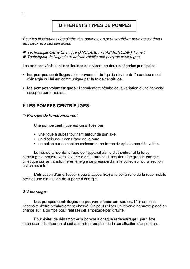 Différence Entre Une Pompe Centrifuge Et Une Pompe Volumétrique Pdf