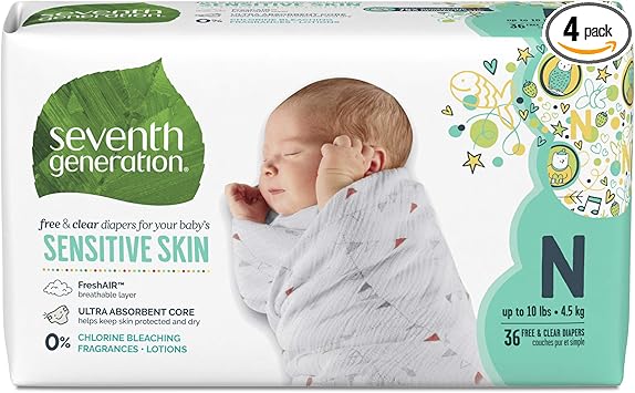 La source : momgenerations.com Seventh Generation Baby Diapers Free And Clear For Sensitive Skin With Animal Prints Newborn 36 Count